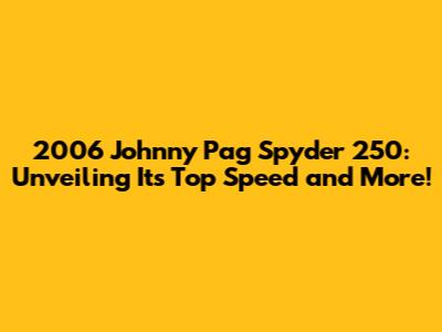 2006 Johnny Pag Spyder 250: Speed, Performance & More!