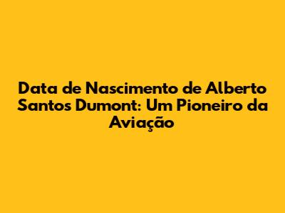 Data De Nascimento De Alberto Santos Dumont: Um Pioneiro Da Aviação