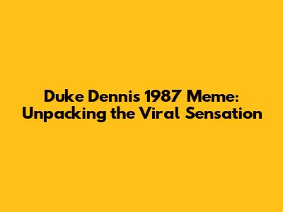 Hey guys, have you seen that hilarious meme popping up everywhere featuring Duke Dennis and the year 1987? It's one of those internet phenomena that starts out of nowhere and suddenly becomes a massive inside joke. But what's the deal with the Duke Dennis 1987 meme? Where did it come from, and why is it so funny? Let's dive deep into this viral sensation and break down the absurdity that has taken over our social media feeds. We're talking about the origins, the evolution, and why, against all odds, this particular meme has struck such a chord with so many people online. It's a testament to the weird and wonderful nature of internet culture, where a simple image or a random date can snowball into a full-blown meme with countless variations and interpretations. So, buckle up, because we're about to explore the delightful chaos of the Duke Dennis 1987 meme.