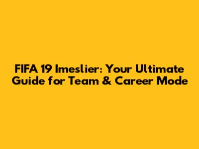 FIFA 19 Imeslier: Ultimate Team & Career Mode Guide