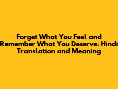 Forget What You Feel, Remember What You Deserve: Hindi Meaning