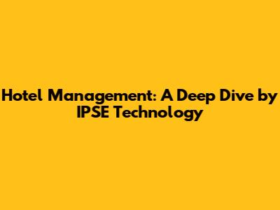 Hotel Management: A Deep Dive By IPSE Technology