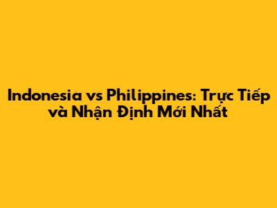 Indonesia Vs Philippines: Trực Tiếp Và Nhận Định Mới Nhất