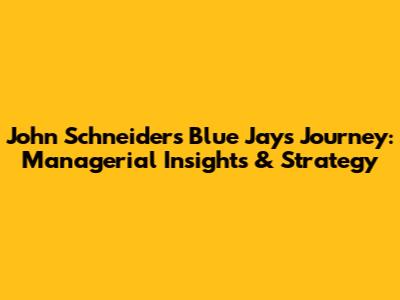John Schneider's Blue Jays Journey: Managerial Insights & Strategy