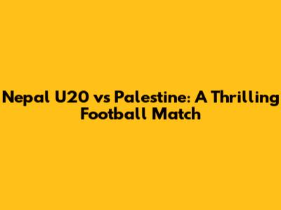 Nepal U20 Vs Palestine: A Thrilling Football Match