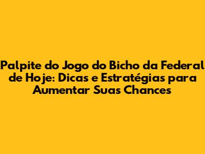 Palpite Do Jogo Do Bicho Da Federal De Hoje: Dicas E Estratégias