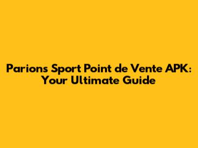 Parions Sport Point De Vente APK: Your Ultimate Guide