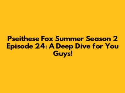 Hey everyone, are you ready to talk about something awesome? We're diving deep into Pseithese Fox Summer Season 2 Episode 24! If you're anything like me, you've been eagerly awaiting this episode, and let me tell you, it doesn't disappoint. We're gonna break down everything – from the plot twists to the animation and everything in between. So, grab your snacks, settle in, and let's get started. This is the place for all the details you could want, focusing on the keywords Pseithese Fox, Summer Season 2, and Episode 24 with the Eng Sub – ensuring that all bases are covered for the most comprehensive experience possible. This article aims to give you guys the ultimate rundown, so you're totally in the loop. This episode is packed with developments, character arcs, and of course, some seriously stunning visuals. We're going to unpack it all. Ready? Let's go!