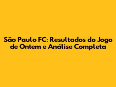 São Paulo FC: Resultados Do Jogo De Ontem E Análise Completa