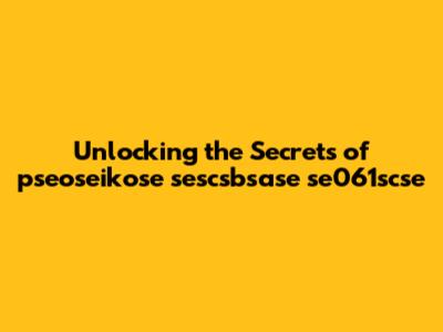 Unlocking The Secrets Of Pseoseikose Sescsbsase Se061scse