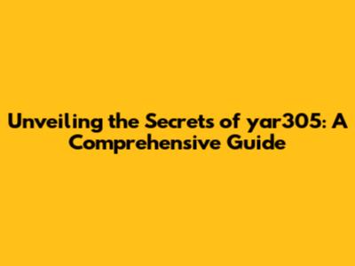 Unveiling The Secrets Of Yar305: A Comprehensive Guide