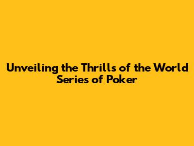 Unveiling The Thrills Of The World Series Of Poker