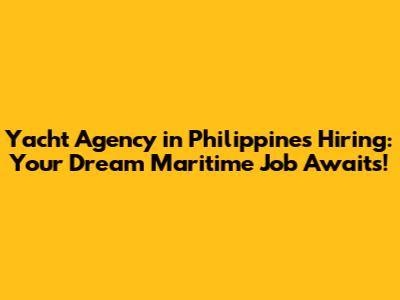 Yacht Agency In Philippines Hiring: Your Dream Maritime Job Awaits!