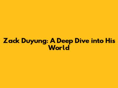 Zack Duyung: A Deep Dive Into His World